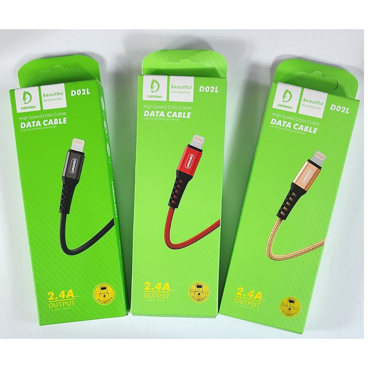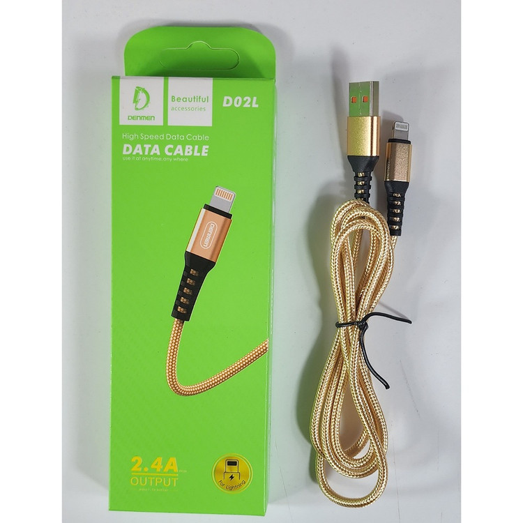 کابل فست شارژ آیفونی لایتنینگ برند دنمن جنس کنفی مدل D02L اصلی کیفیت عالی