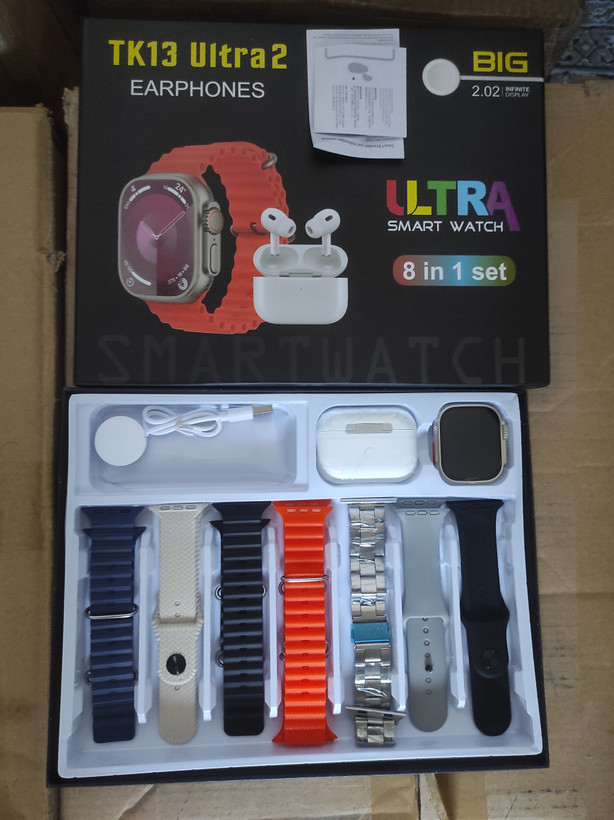 پک ساعت هوشمند و ایرپاد مدل tk13 ultra2 با ۷ بند اضافه دارای بند فلزی