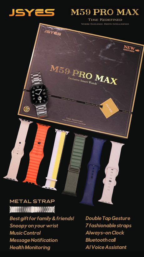 ❇️ ساعت هوشمند مدل m59 promax به همراه ۷ بند متفاوت و شارژر وایرلس ❇️