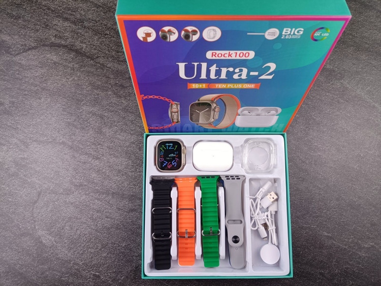 پک ساعت هوشمند و ایرپاد Rock100 با ۹ عدد بند اضافه و قاب کیفیت عالی