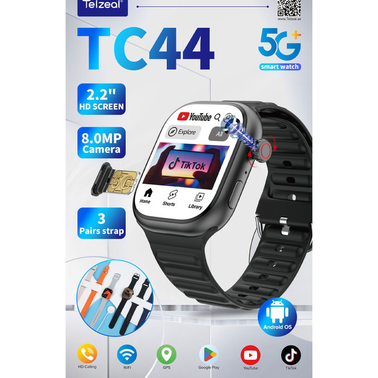 ساعت هوشمند Telzeal TC44 یکی از جدیدترین و حرفه ای ترین ساعت های اندرویدی با پشتیبانی از سیم کارت 5G است که با هدف ارائه تجربه کامل یک گوشی هوشمند بر روی مچ دست طراحی شده است. این ساعت با ترکیب طراحی ظریف، عملکرد فوق العاده سریع و قابلیت های کامل اندروید، مرز بین ساعت هوشمند و تلفن همراه را از بین می برد.