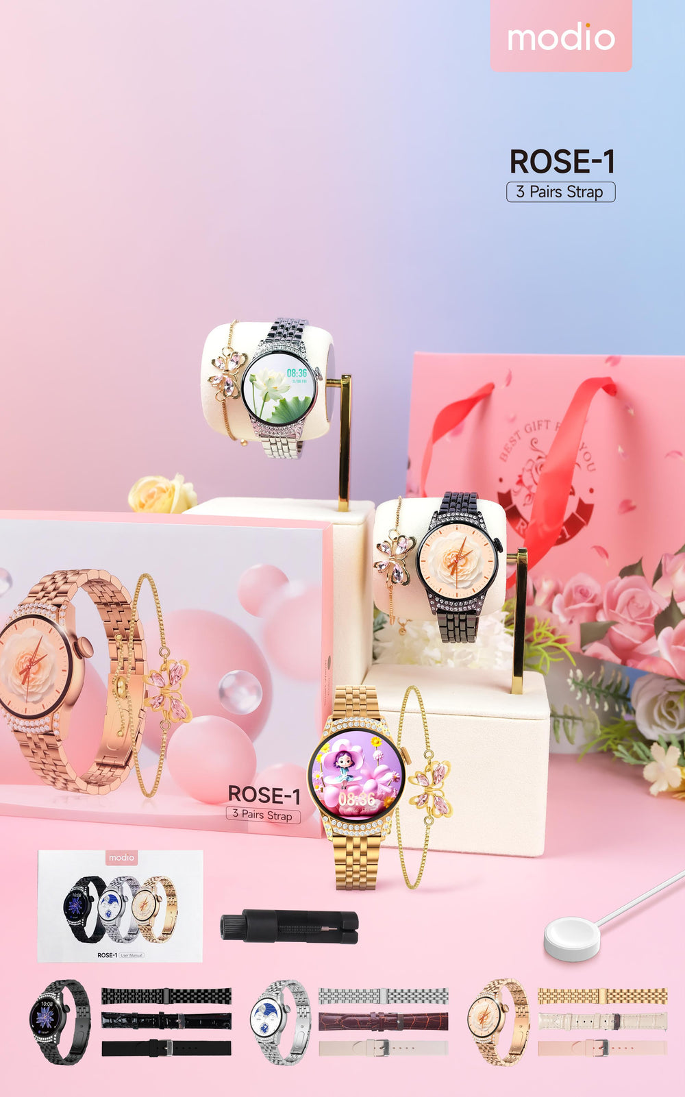 ساعت هوشمند جدید زنانه Modio Rose1 اصلی کیفیت تصویر عالی