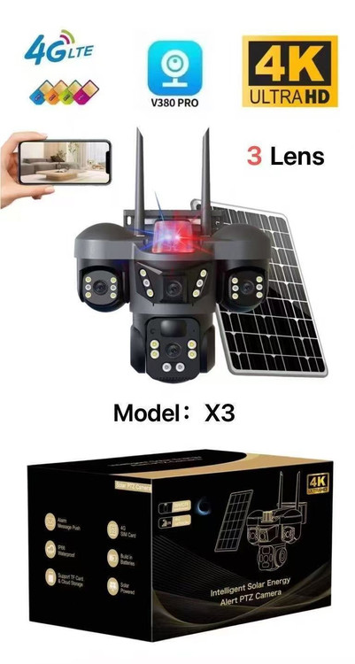 دوربین سیم کارتی ۳ لنز ۳ تصویر شارژی با پنل خورشیدی مدل X3 اصلی