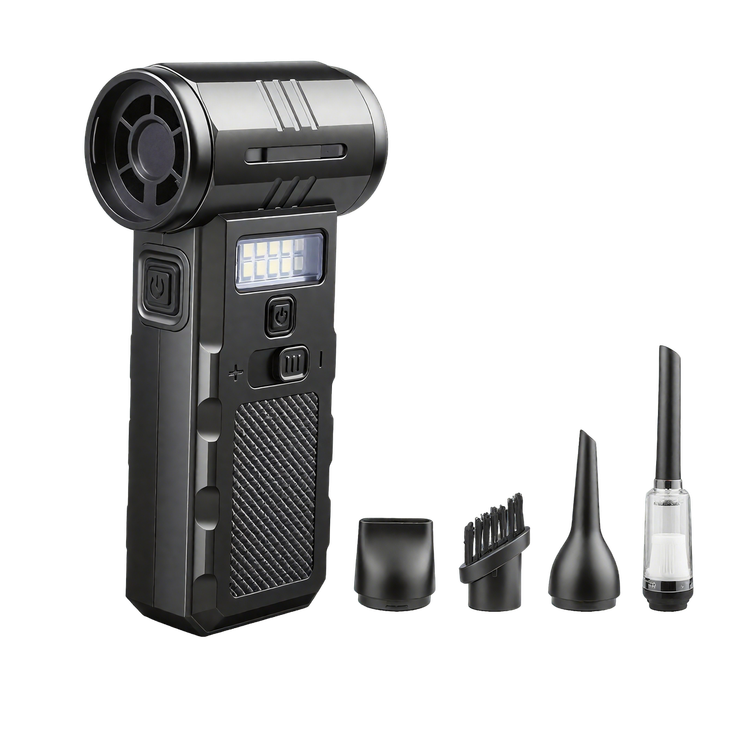 جت فن و وکیوم شارژی VIOLENT مدل F028 یک ابزار حرفهای، سبک و بسیار قدرتمند است که با ترکیب عملکرد دمندگی، مکش (وکیوم)، نور اضطراری و نازلهای متنوع، به یکی از کاملترین جت فنهای شارژی بازار تبدیل شده است. این دستگاه برای تمیزکاری دقیق کامپیوتر، لپتاپ، کیس، تجهیزات الکترونیکی، خودرو، کمپینگ و حتی خشککردن ابزار و مو کاربرد گستردهای دارد.