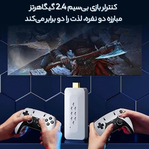 کنسول بازی پرتابل مدل Game Stick M22 ویژگی های محصول: ساپورت 52 کنسول مختلف دارای دو عدد دسته بلوتوثی قابلیت تغییر بازی ها و اضاف کردن بازی های جدید حافظه اجرایی :DDR3 256MB حافظه ذخیره سازی :64 گیگابایت قابلیت ارتقا تا 128 گیگ تعداد بازی های روی دستگاه :بیش از 15 هزار عدد بازی های دستگاهای نوستالژی مانند فوتبال98 .کراش .GTA . GOD OF WARو …. مدل سی پی یو :GB2 چهار هسته ای قابلیت اتصال به انواع مانیتورو تلویزیون دارای پورت HDMI ولتاژ مورد نیاز :5ولت یک آمپر (برق پورت یو اس بی استفاده از آداپتور یک آمپر) پشتیبانی از 4K پشتیبانی از باز های کنسول پلی استیشن یک .PSP.سگا و 52 کنسول مختلف) قابلیت اتصال دسته ها به کامپیوتر و لپ تاب به عنوان گیم پد اقلام همراه : کنسول گیم دو عدد دسته بلوتوثی طرح PS5 رم 64 گیگ U3 دانگل بلوتوث دسته ها کابل HDMI کابل پاور دفترچه راهنما
