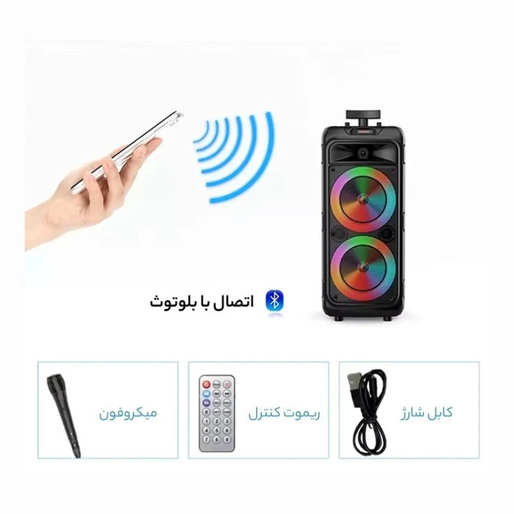 اسپیکر بلوتوثی شارژی قابل حمل چمدونی ZQS-8211 قدرتمند با رقص نور میکروفون سیمی و ریموت کنترل کیفیت عالی