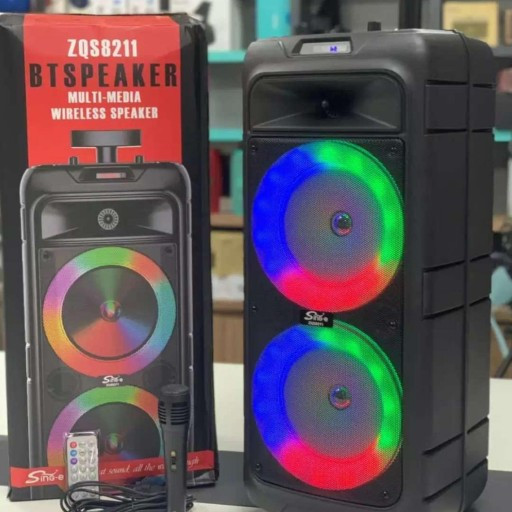 اسپیکر بلوتوثی شارژی قابل حمل چمدونی ZQS-8211 قدرتمند با رقص نور میکروفون سیمی و ریموت کنترل کیفیت عالی